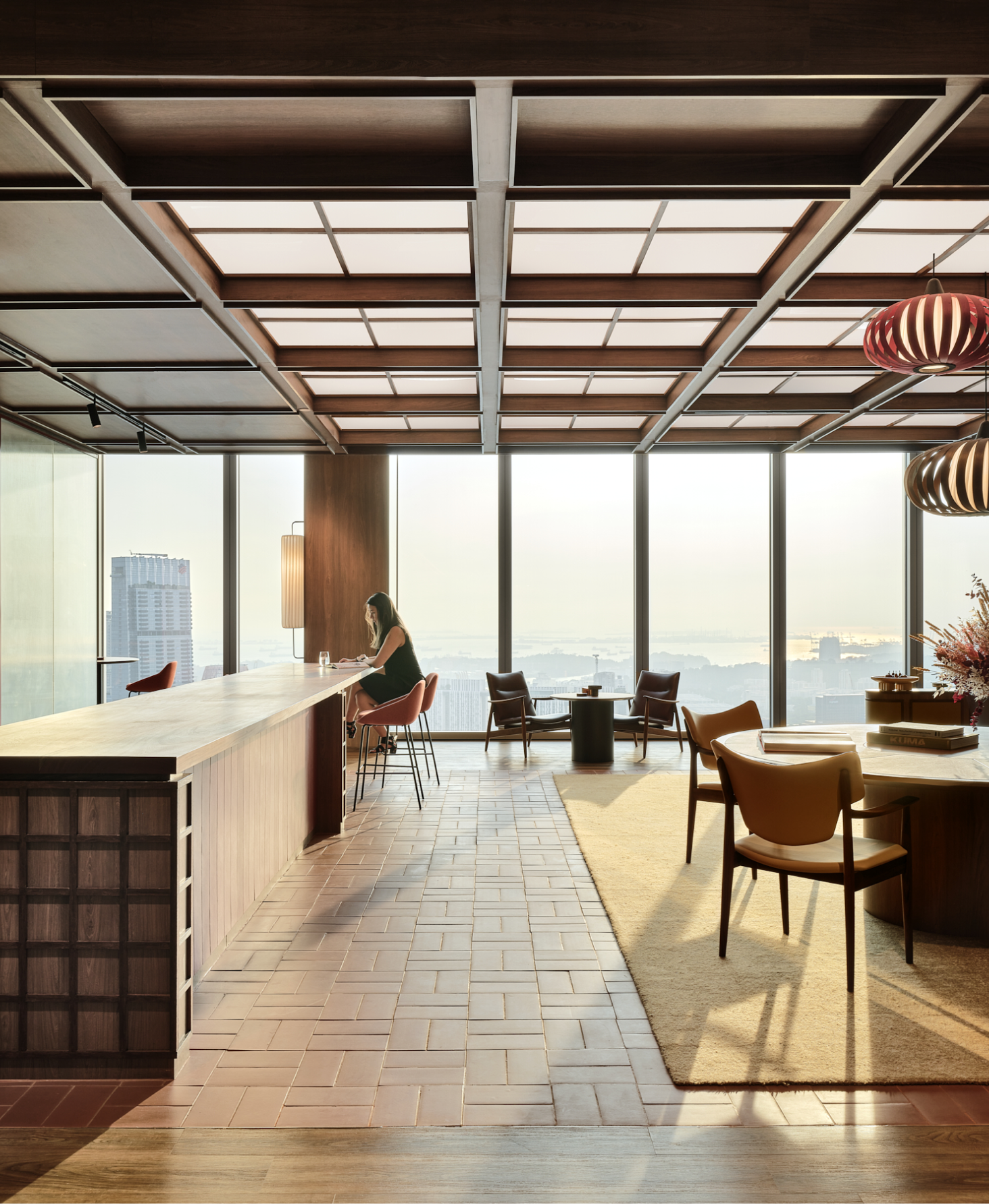 MSDO collaborated with Cushman & Wakefield to create a hospitality-led workspace on Level 47 of the CapitaSpring Tower in downtown Singapore. The goal was to entice team members back into the office post-pandemic and offer flexibility for various working styles, as well as provide flexible client spaces.