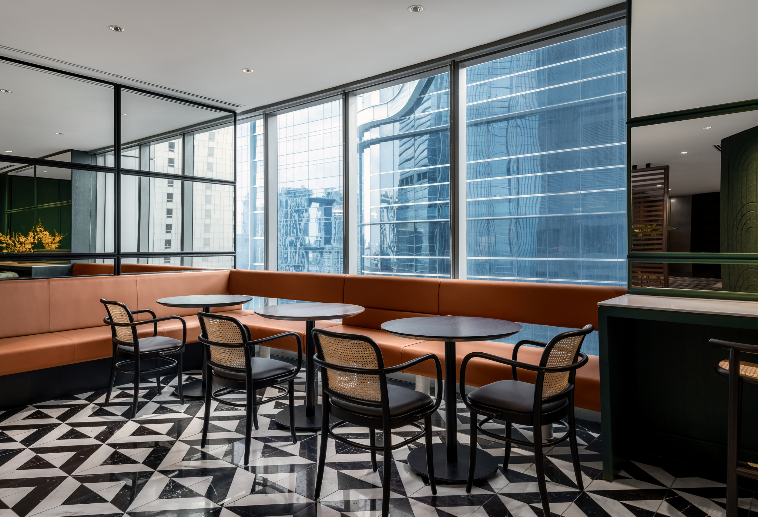 A central arcaded space provides a spine for the meeting rooms. The pantry is located to maximise the beautiful views and natural light. Adjacent is an exclusive business club Mark which has an all-day food and beverage programme provided by Proof & Co.